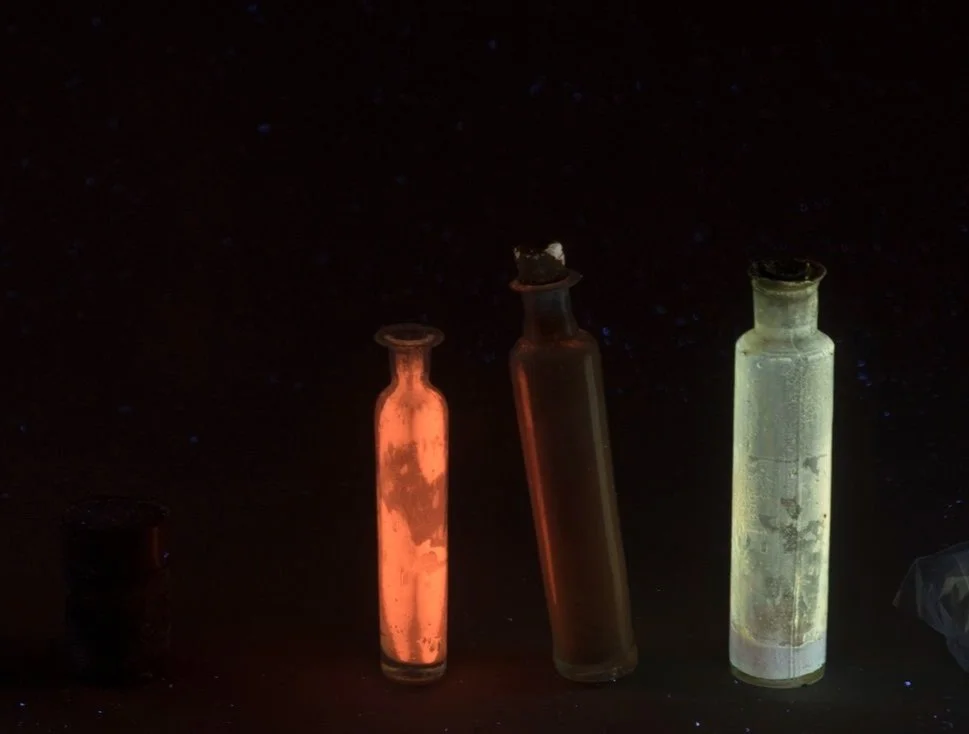 Normal illumination of the glass and metal vials before treatment. (Copy)